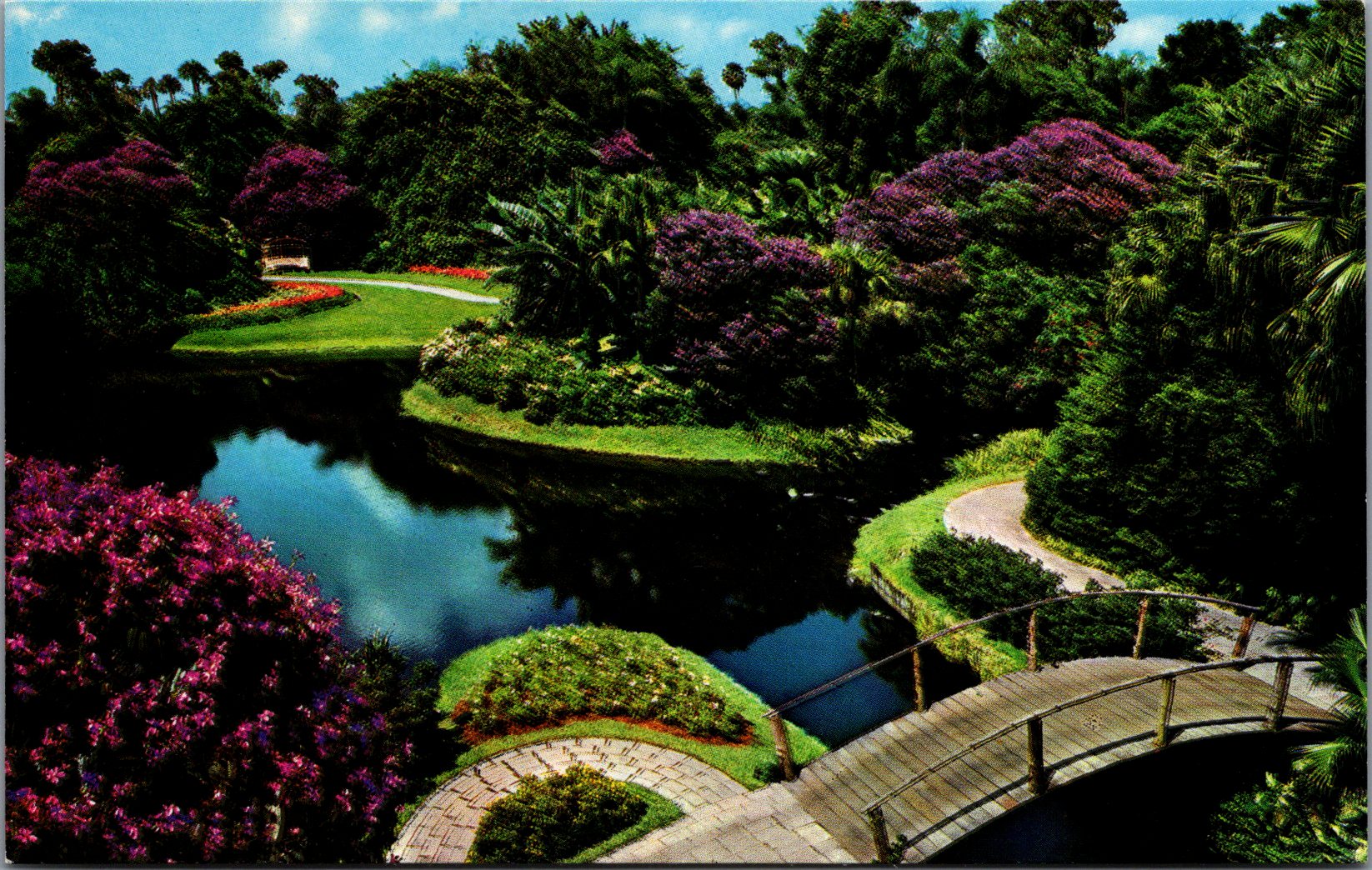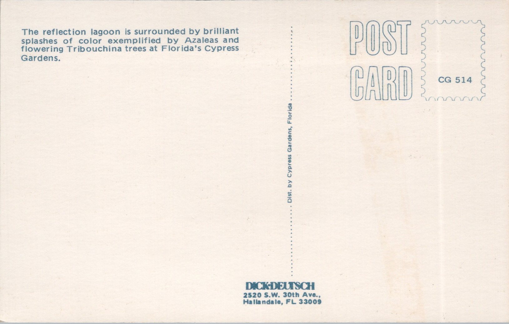 Postcard Reflection Lagoon Azaleas Tribouchina Trees Florida Cypress Garden