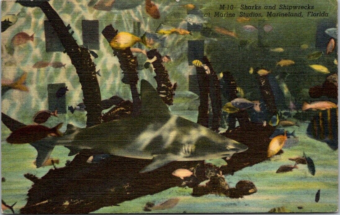 Postcard Vintage M-10 Sharks And Shipwrecks At Marine Studios Marineland Florida