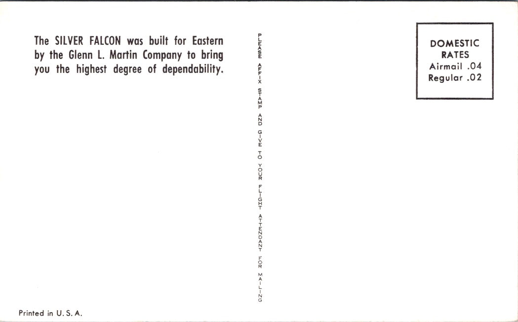 Vintage Postcard Fly Eastern Airlines Great New Silver Falcon United States