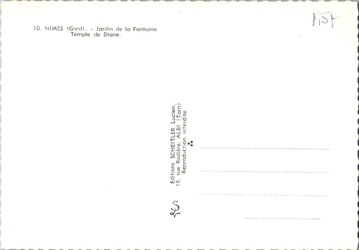 Vintage Postcard Fountain Garden Diana Temple Nimes France Unposted
