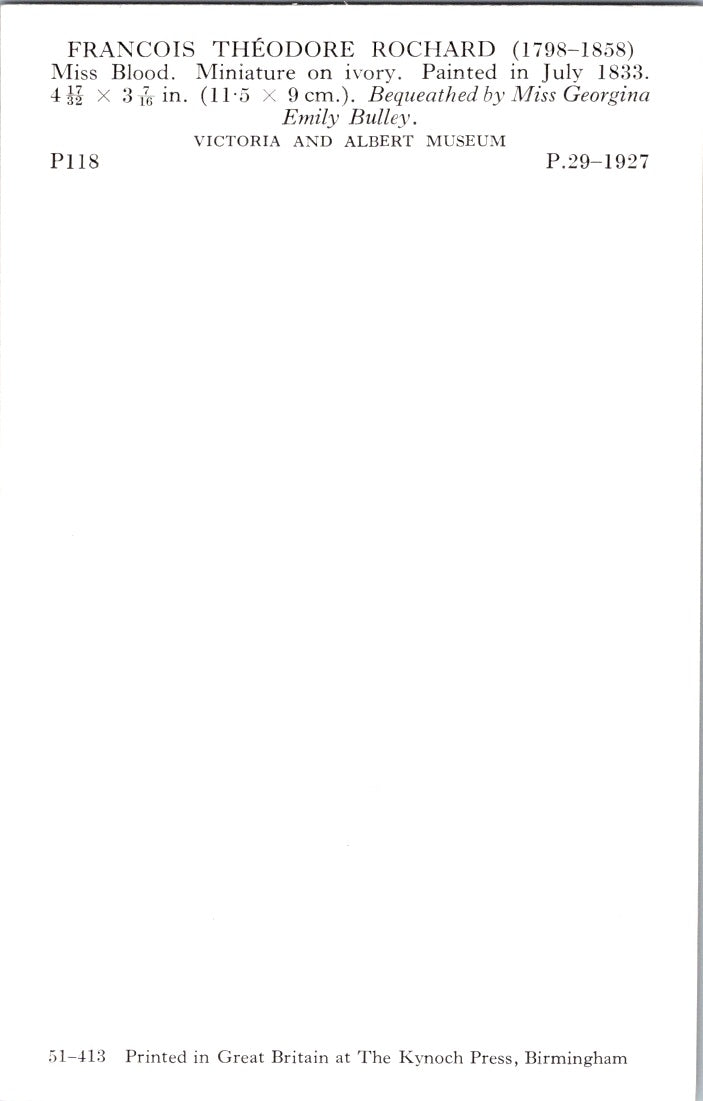 Vintage Postcard Francois Theodore Rochard Miss Blood Miniature Of Ivory England