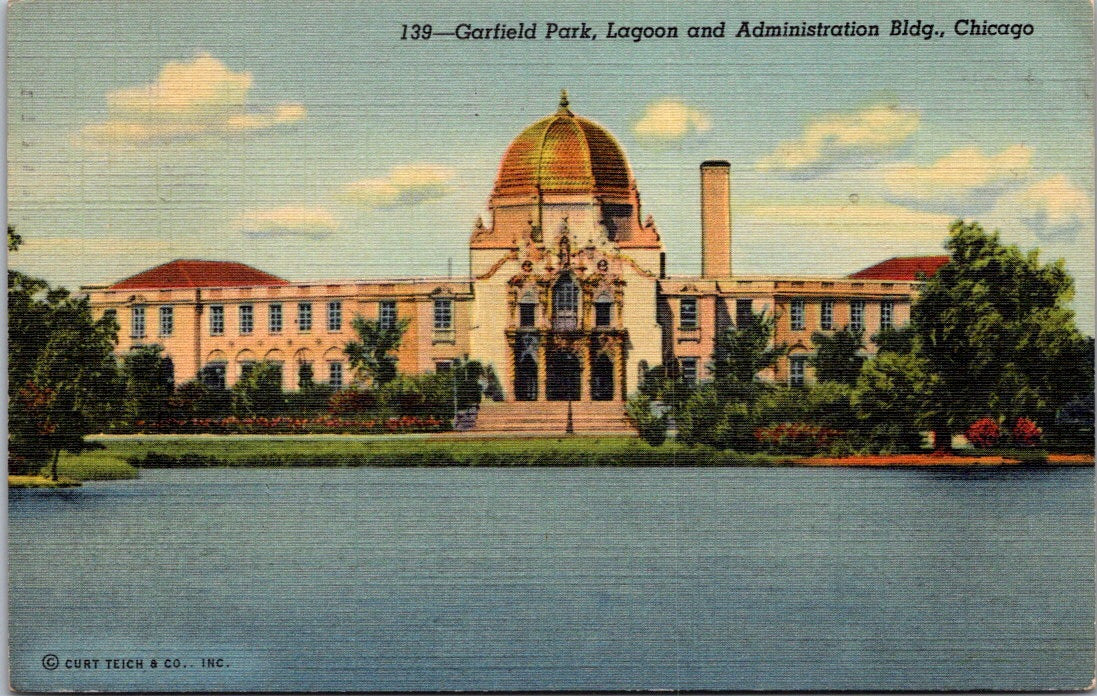 Vintage Postcard Garfield Park Lagoon And Administration Building Chicago Posted