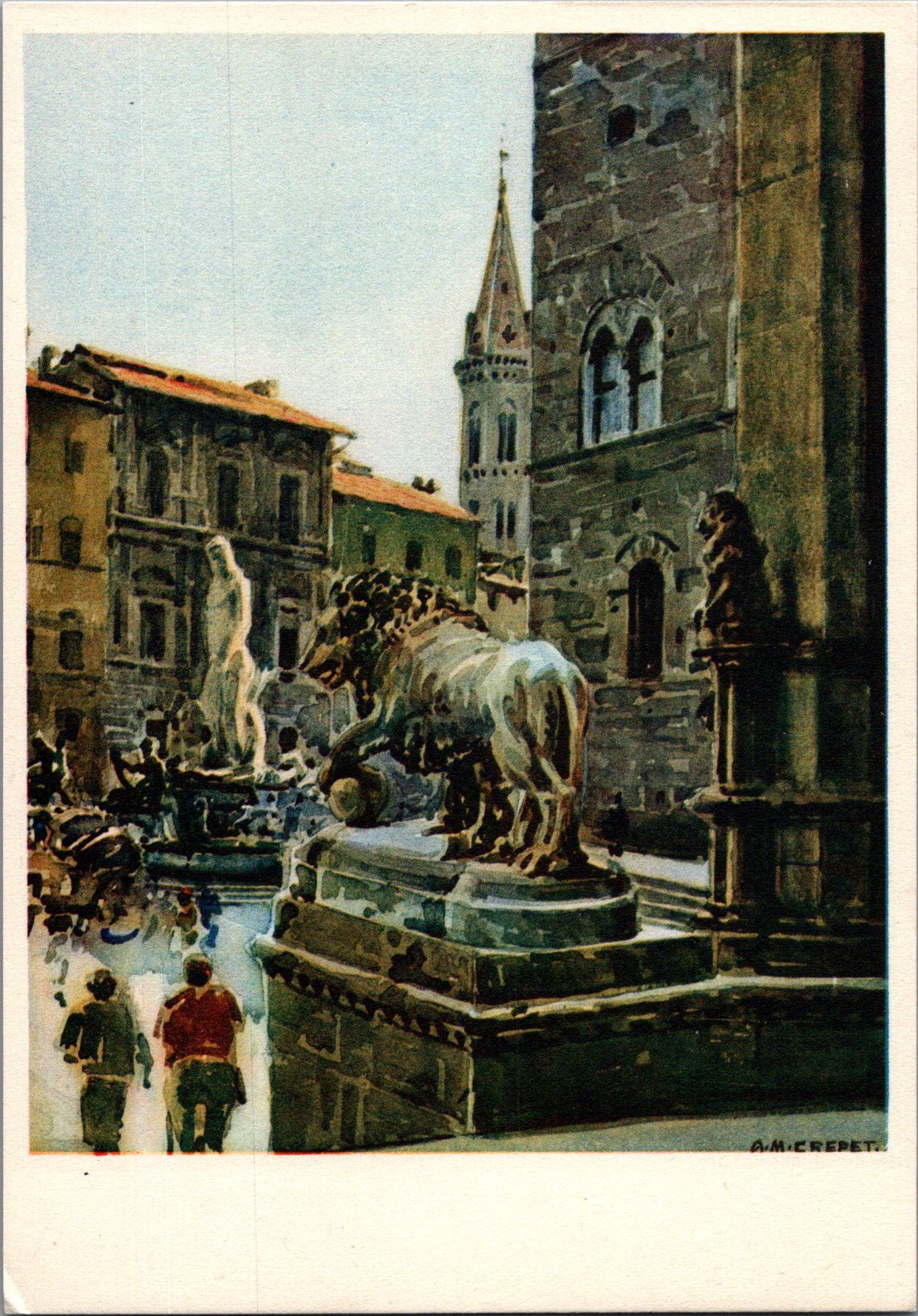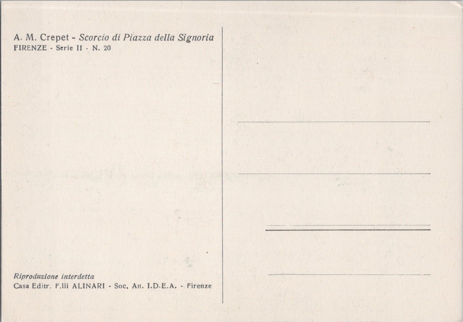 Vintage Postcard Glimpse Of Piazza della Signoria By Angelo Maria Crepet Italy