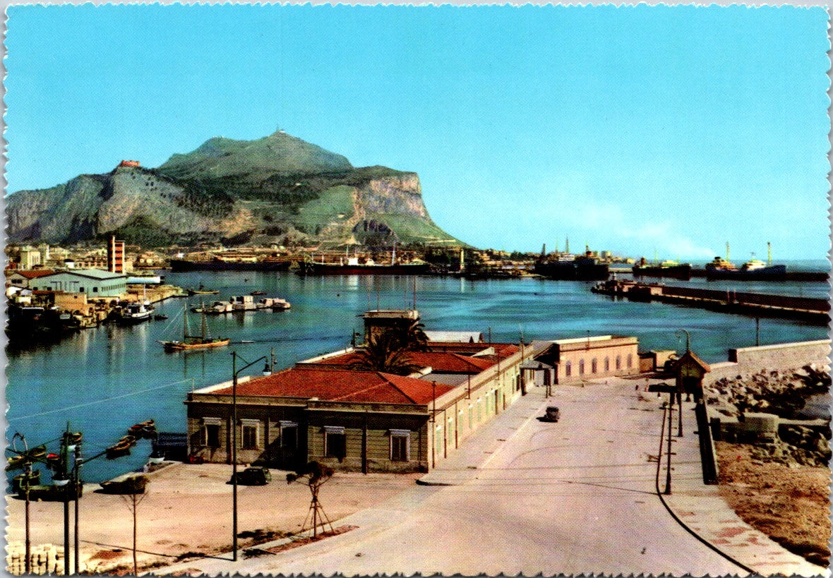 Vintage Postcard Harbor Office In Palermo Sicily Italy Unposted
