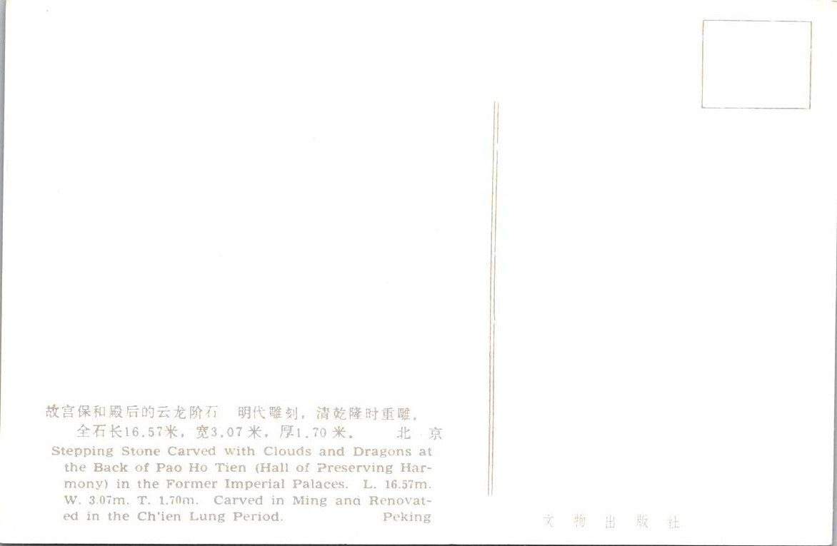 Vintage Postcard Stepping Stone Carved Clouds And Dragons Back Of Pao Ho Tien