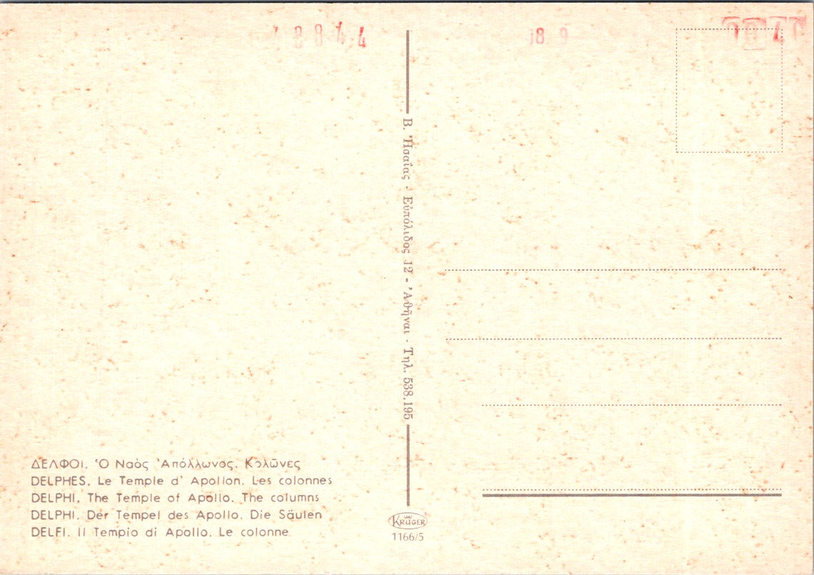 Vintage Postcard The Columns Temple Of Apollo Delphi Greece Unposted