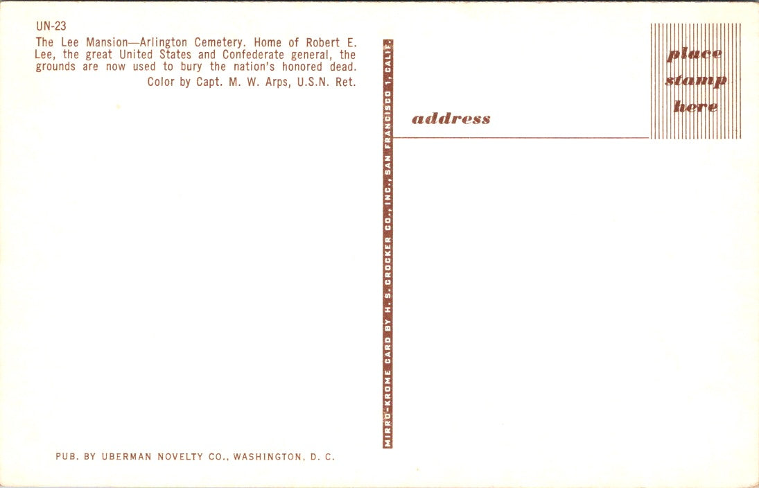 Vintage Postcard The Lee Mansion Arlington Cemetery The Robert Lee Memorial