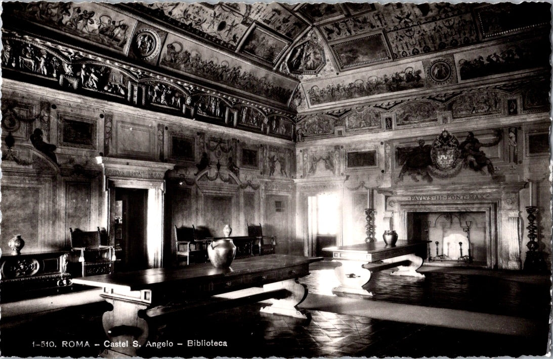 Vintage Postcard The Library Castel Sant'Angelo Rome Italy Unposted