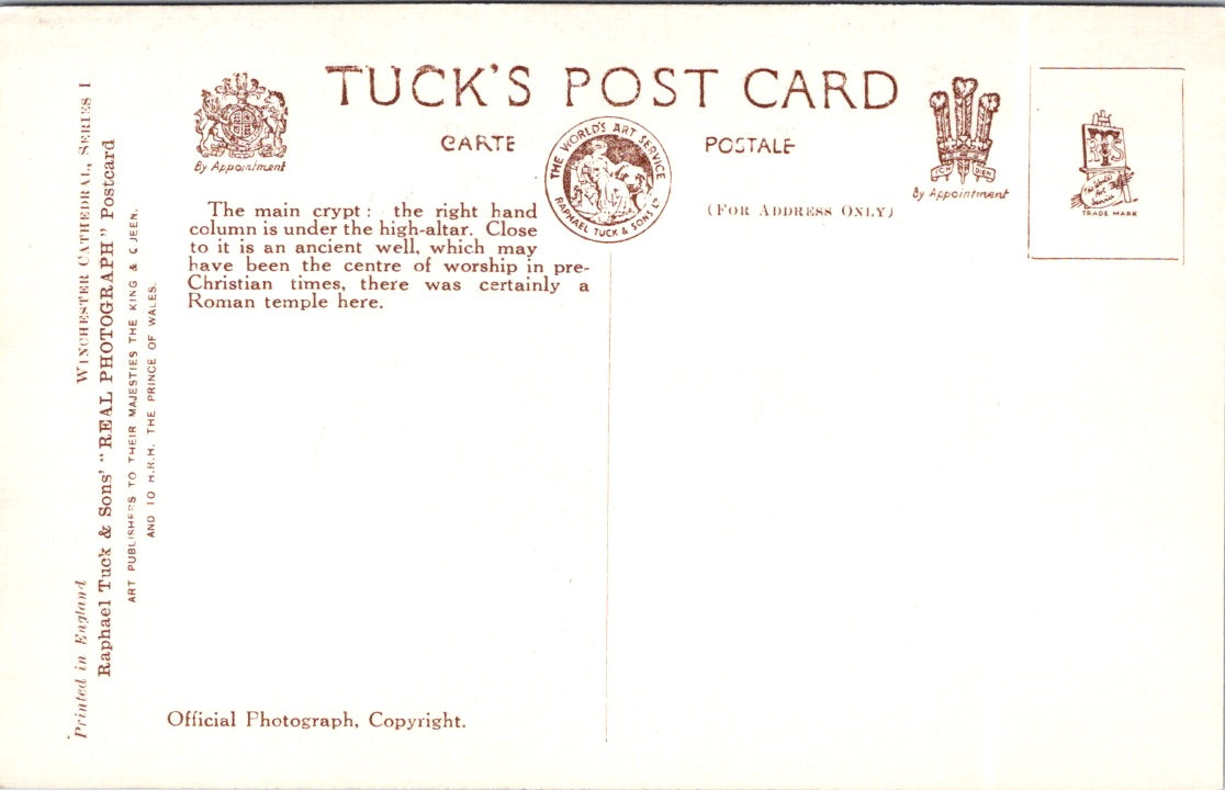 Vintage Postcard The Main Crypt Winchester Cathedral England United Kingdom