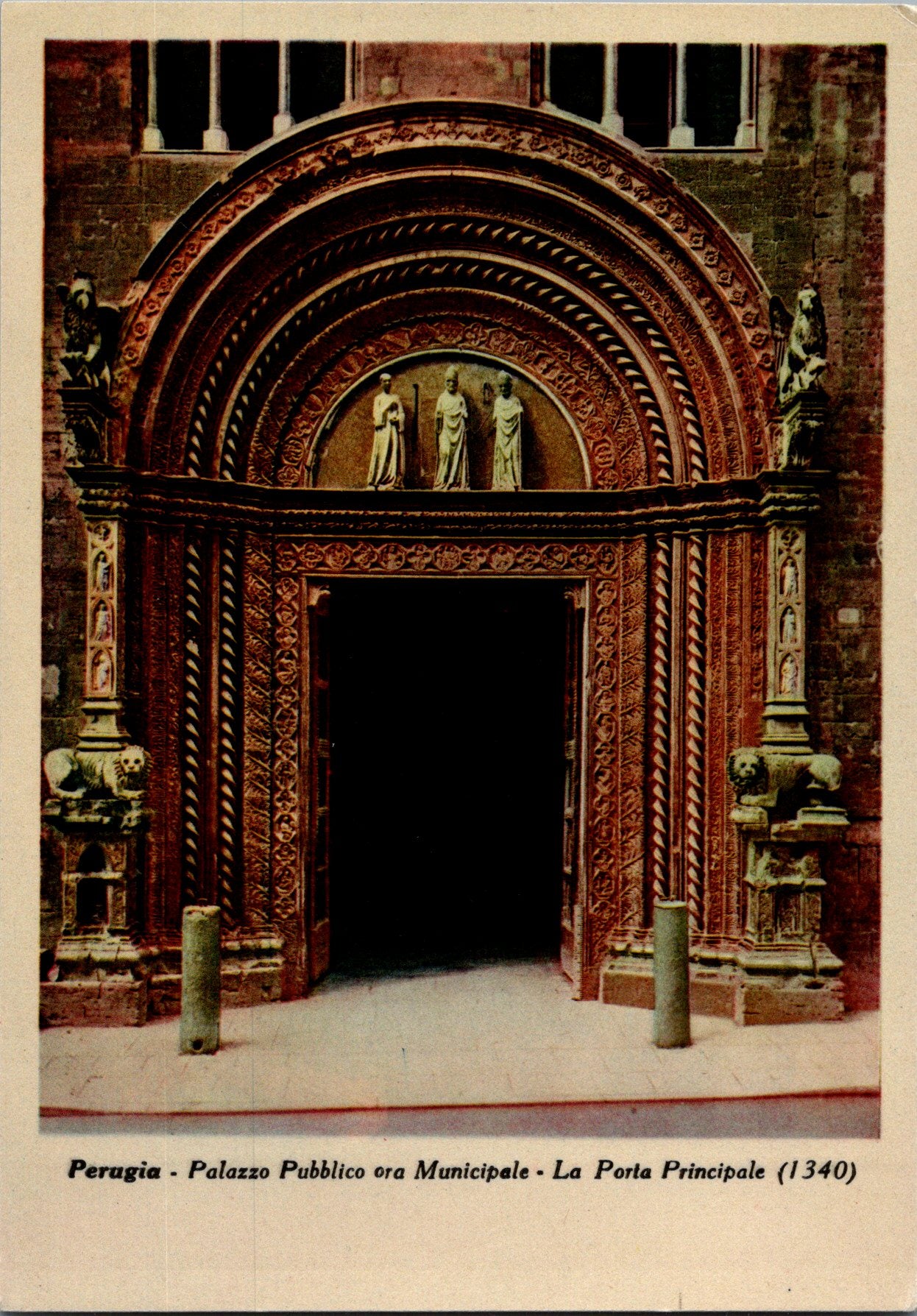 Vintage Postcard The Main Door Municipal Public Building Perugia Italy Unposted