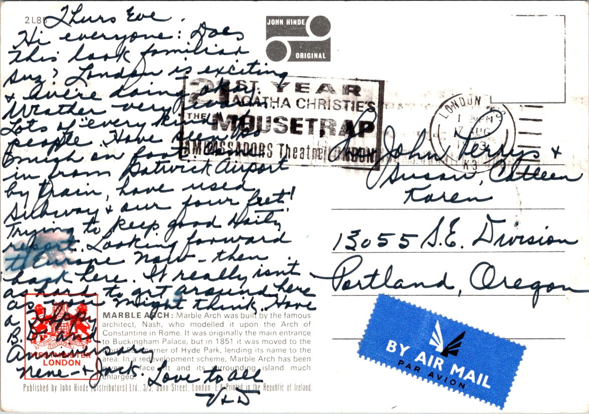 Vintage Postcard The Marble Arch Triumphal Arch In London England Posted