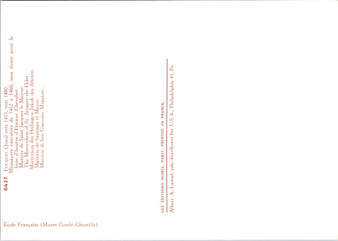 Vintage Postcard The Martyrdom Of Saint Jacques The Elder Musee Conde France