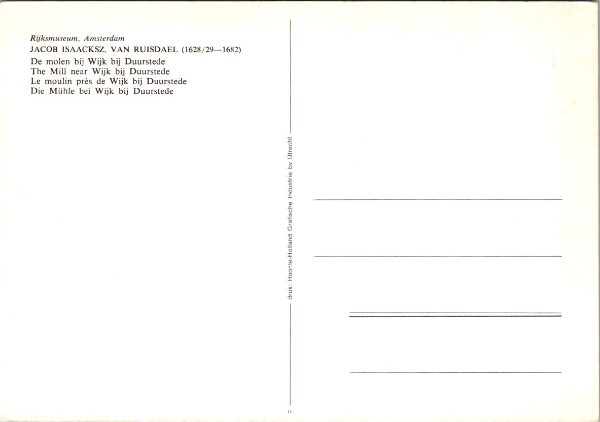 Vintage Postcard The Mill Near Wijk Bij Duurstede Rijksmuseum Amsterdam Unposted