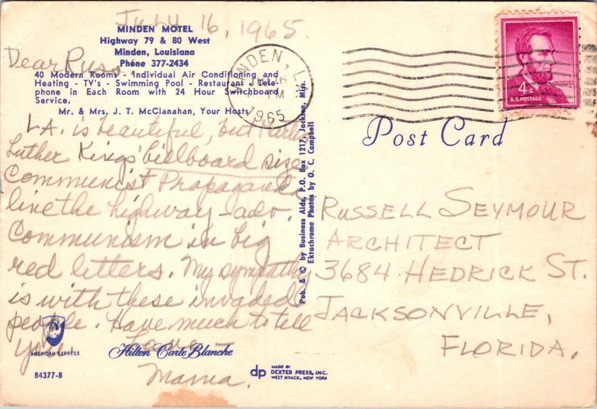 Vintage Postcard The Minden Hotel West Minden Louisiana United States Posted