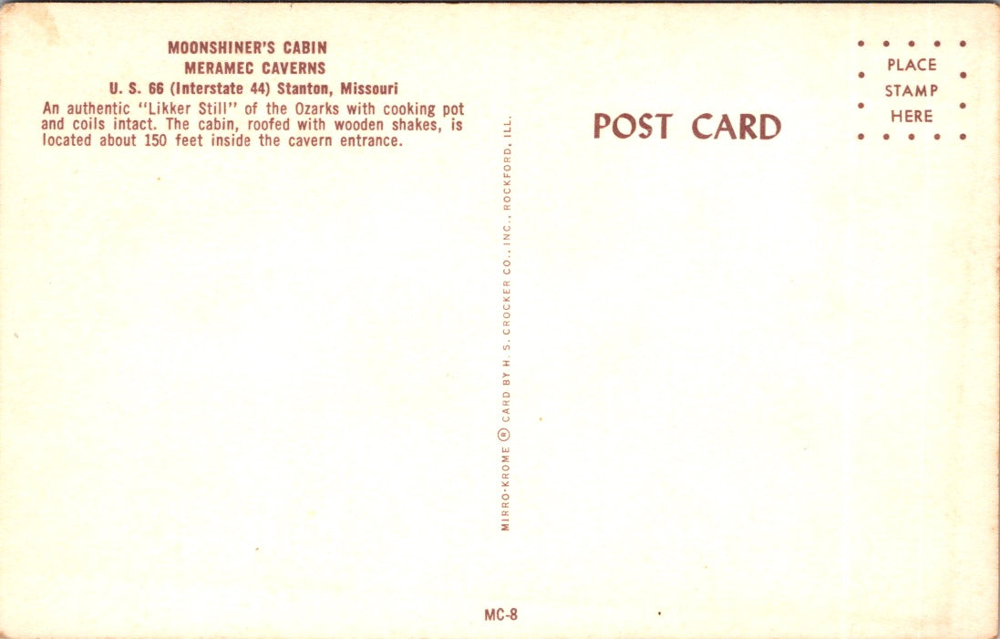 Vintage Postcard The Moonshiner's Cabin Meramec Caverns Missouri Unposted