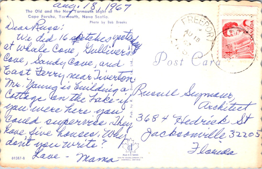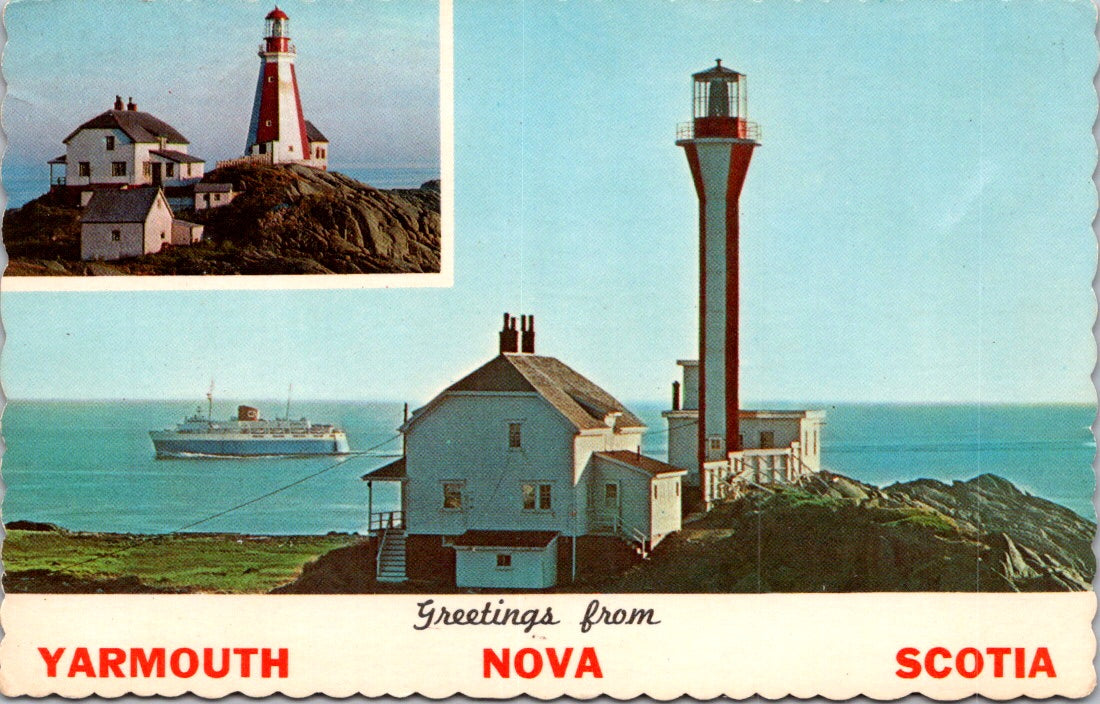 Vintage Postcard The Old And New Yarmouth Light Cape Forchu Nova Scotia Posted
