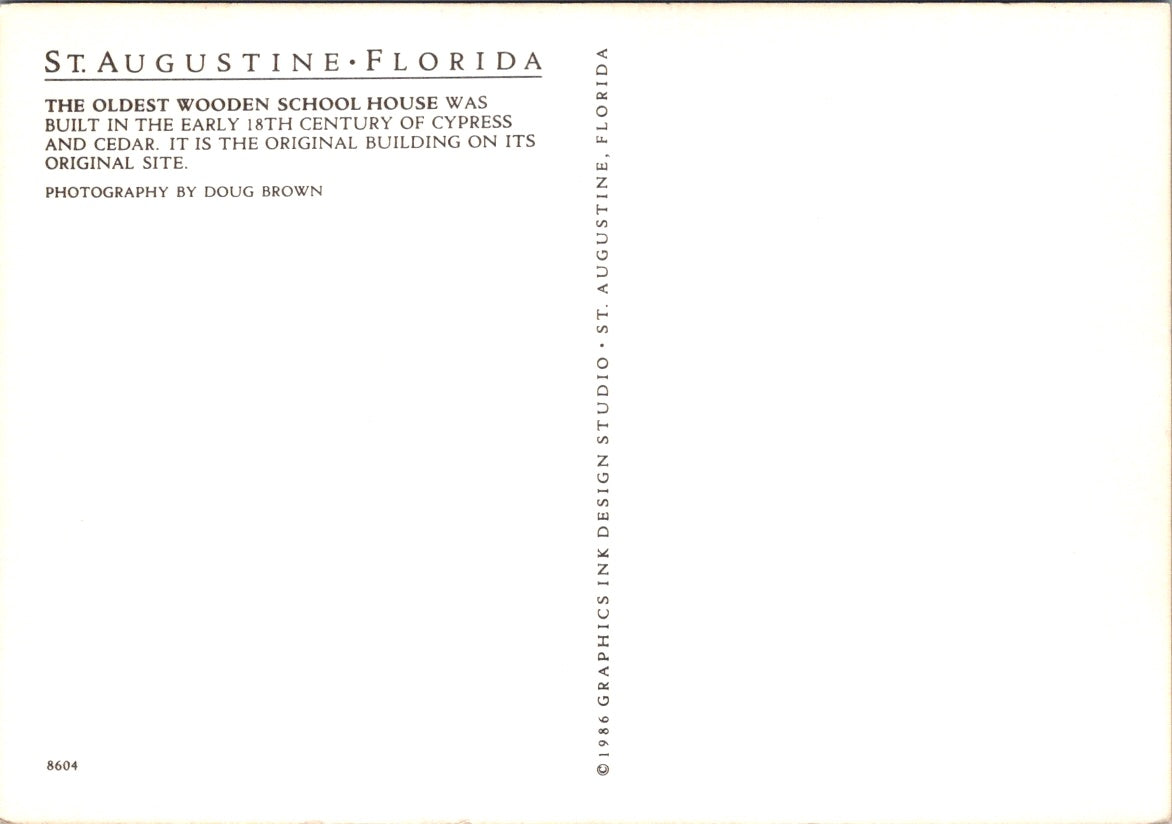Vintage Postcard The Oldest Wooden School St. Augustine Florida United States