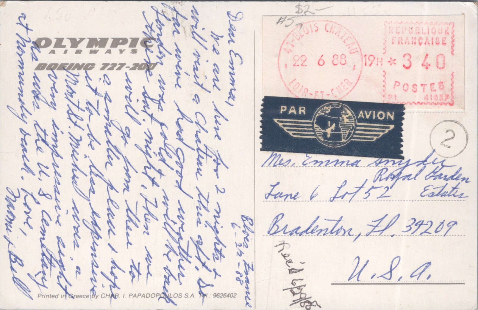 Vintage Postcard The Olympic Airways Boeing 727-100 Greece Posted