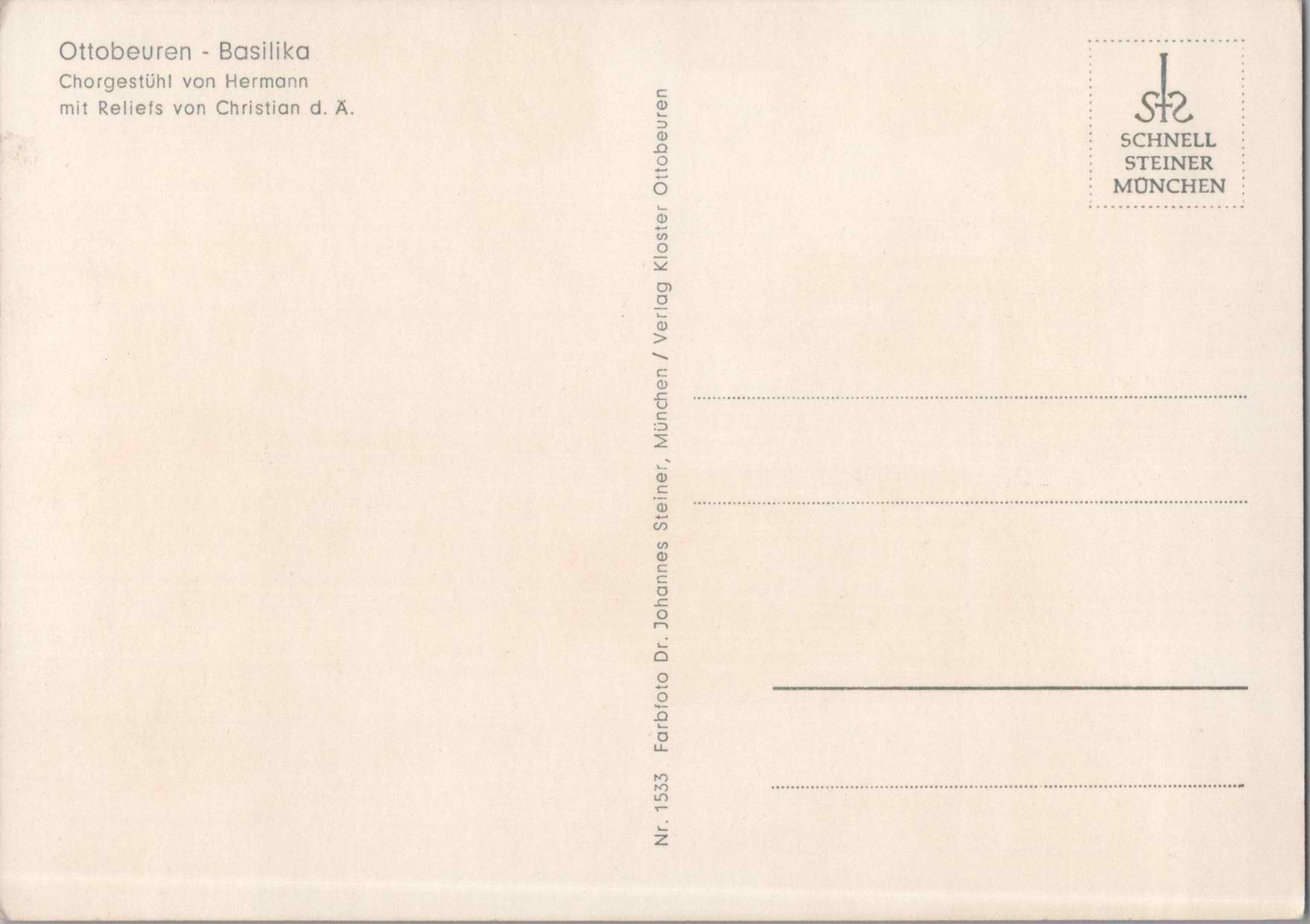 Vintage Postcard The Ottobeuren Abbey Choir Chair Reliefs Germany Unposted
