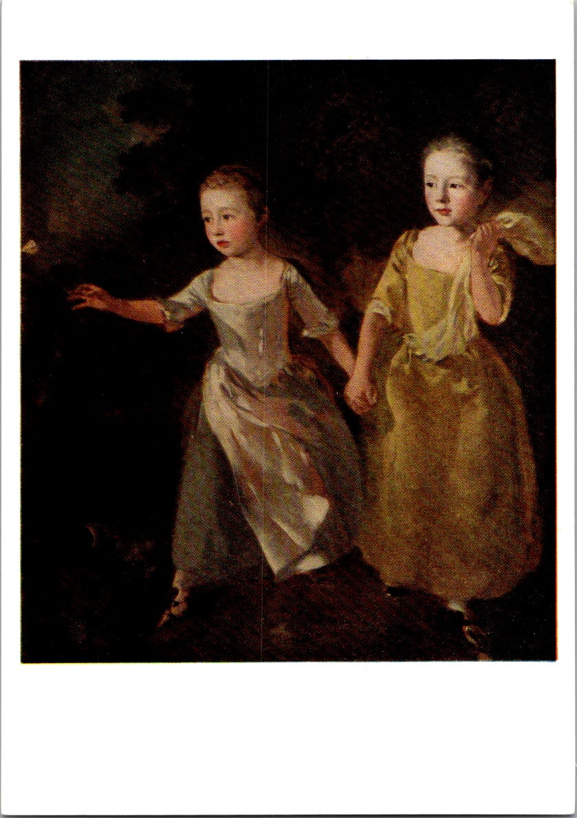 Vintage Postcard The Painter's Daughters Chasing a Butterfly By Gainsborough