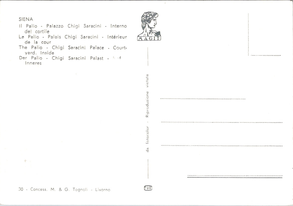 Vintage Postcard The Palio Interior Of Chigi Sarini Palace Courtyard Siena Italy