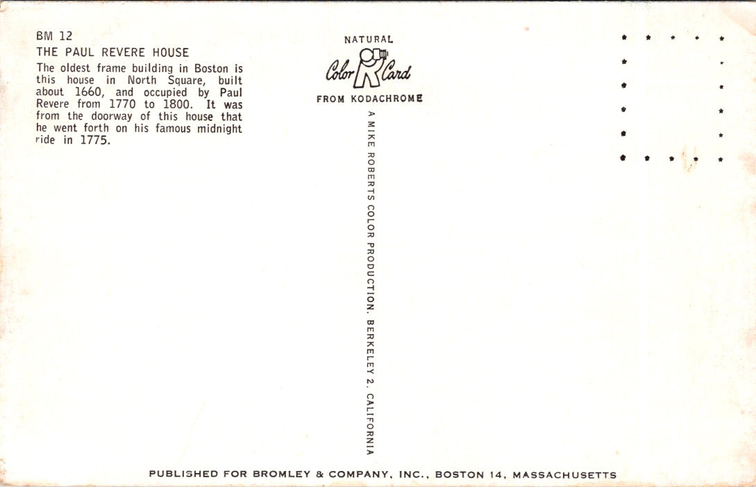 Vintage Postcard The Paul Revere House Built 1680 Boston Massachusetts Unposted