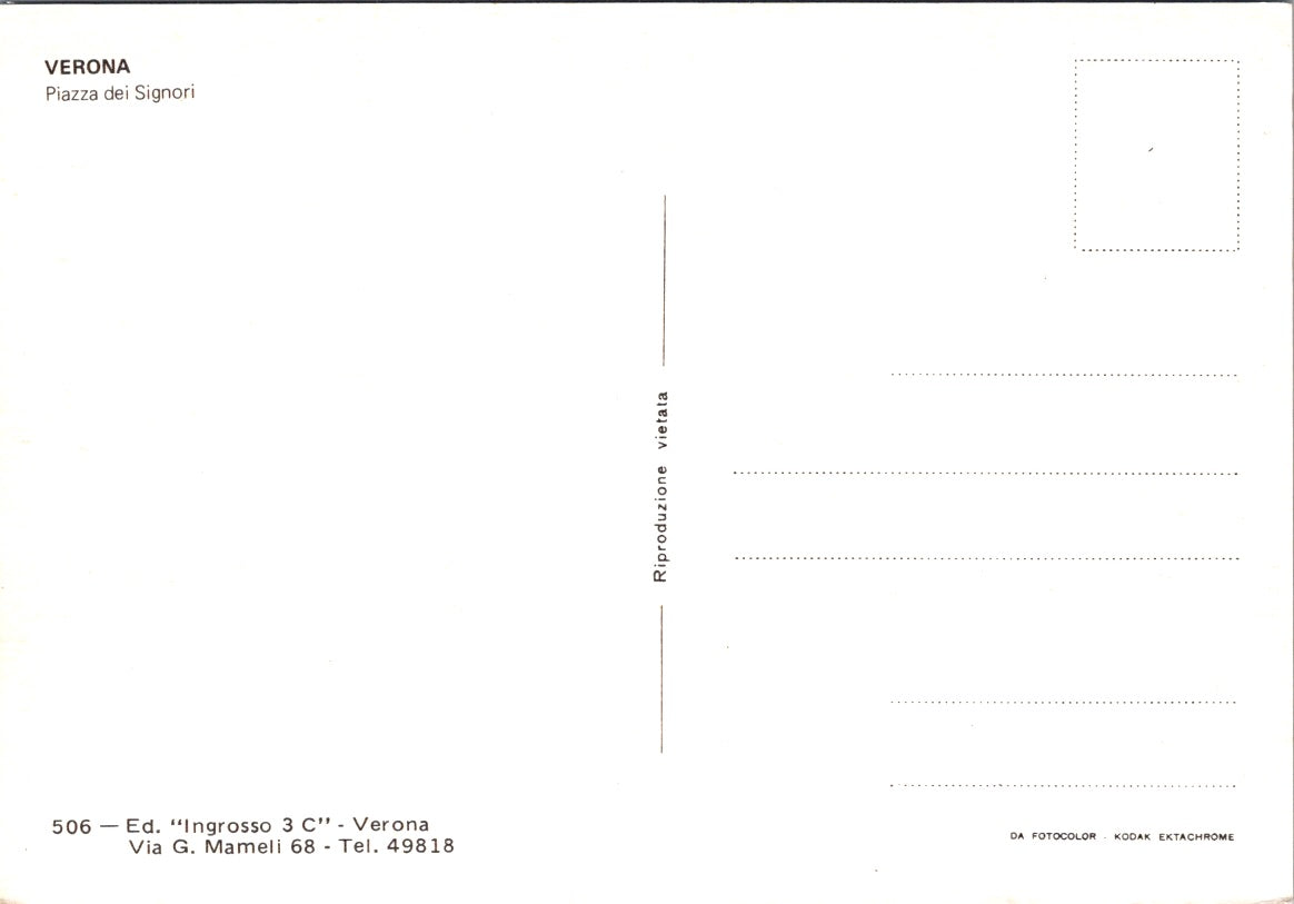 Vintage Postcard The Piazza dei Signori Verona Italy Unposted