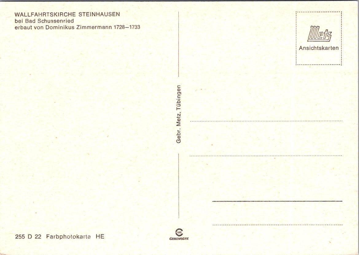 Vintage Postcard The Pilgrimage Church Steinhausen Bad Schussenried Germany