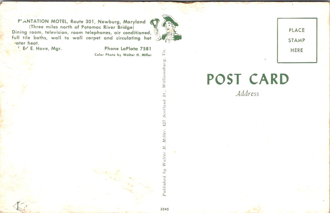 Vintage Postcard The Plantation Motel Newburg Maryland United States Unposted