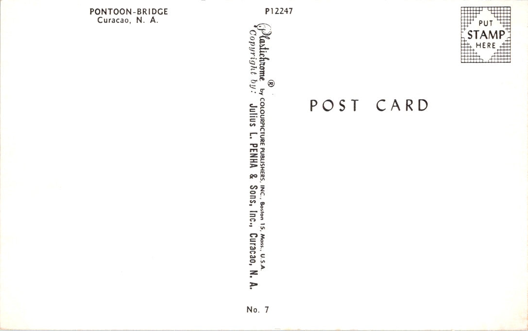 Vintage Postcard The Pontoon Bridge Curaçao Unposted