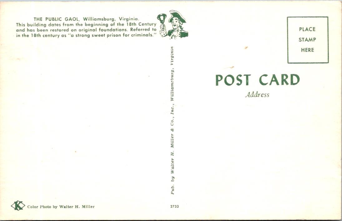 Vintage Postcard The Public Gaol Williamsburg Virginia United States Unposted
