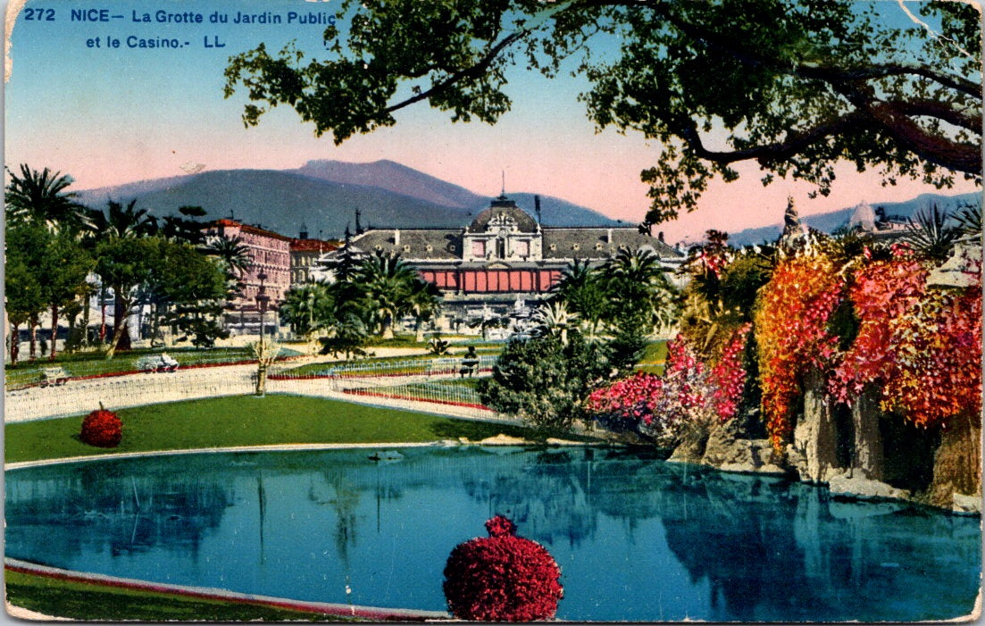 Vintage Postcard The Public Garden Cave And The Casino Nice France Unposted