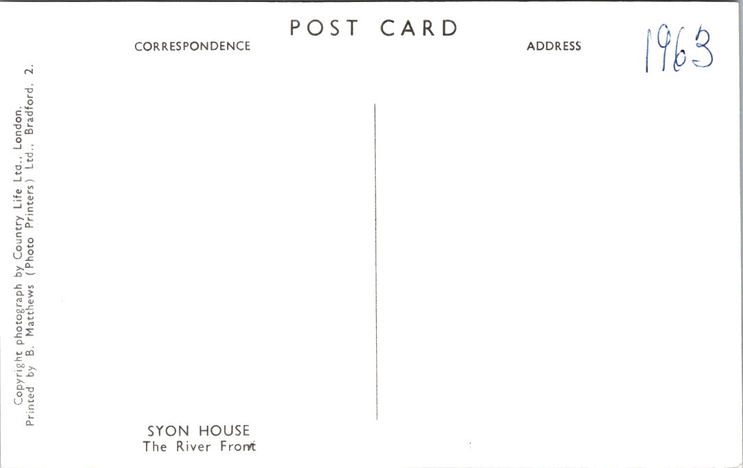 Vintage Postcard The River Front Syon House England United Kingdom Unposted