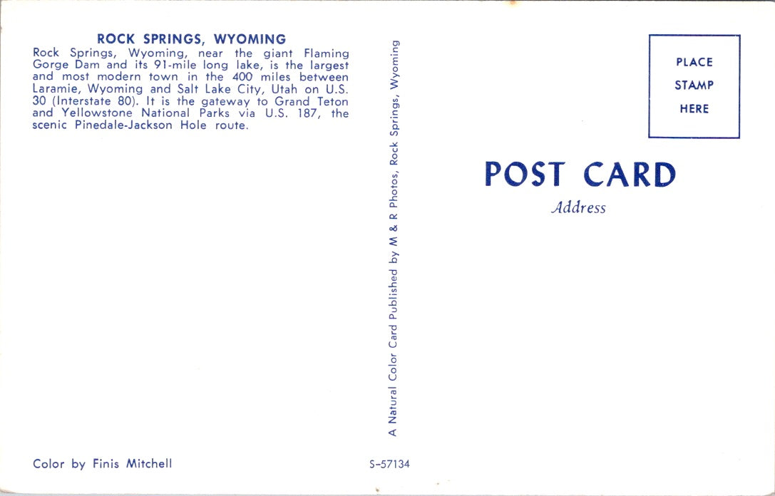 Vintage Postcard The Rock Springs Wyoming United States Unposted