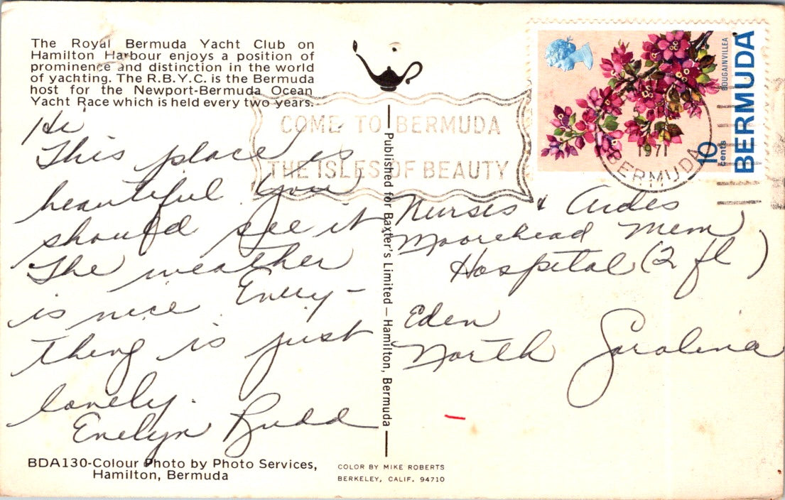 Vintage Postcard The Royal Bermuda Yacth Club Hamilton Harbour Posted 1971