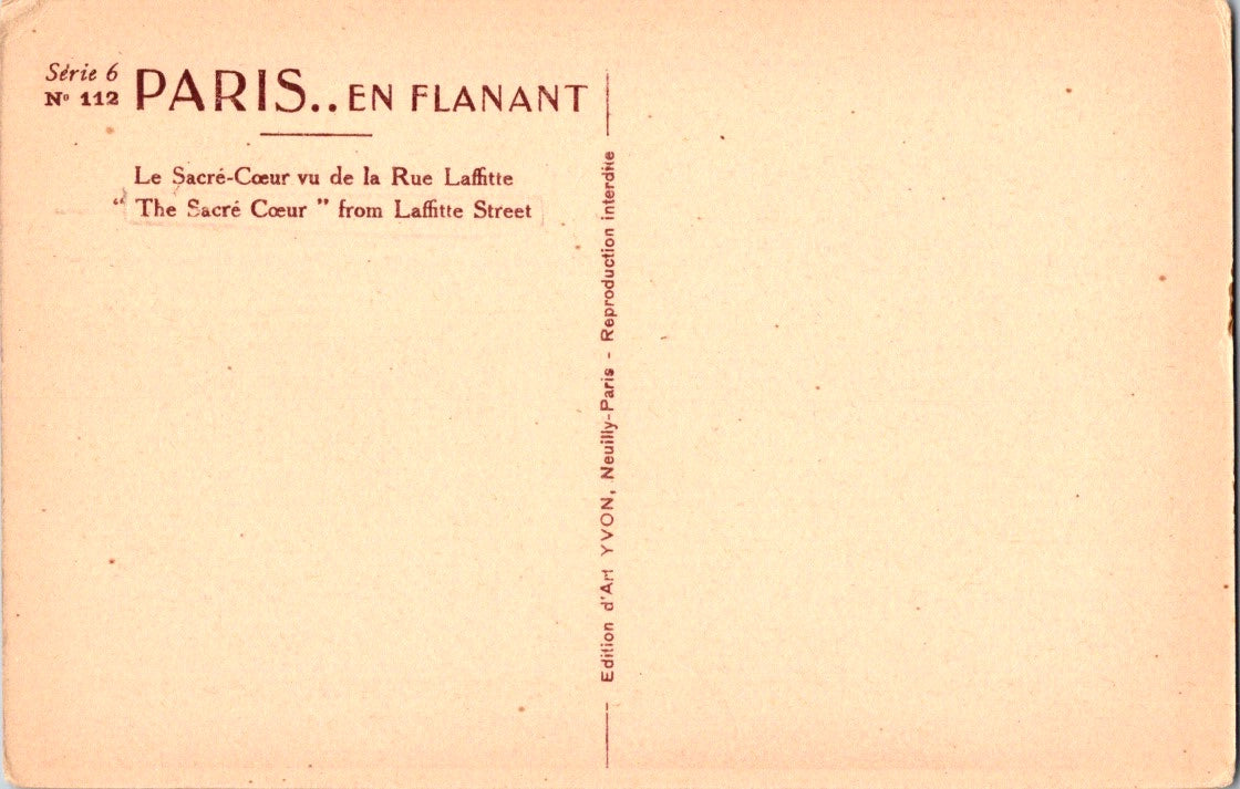 Vintage Postcard The Sacré-Cœur From Lafitte Street Paris France Unposted