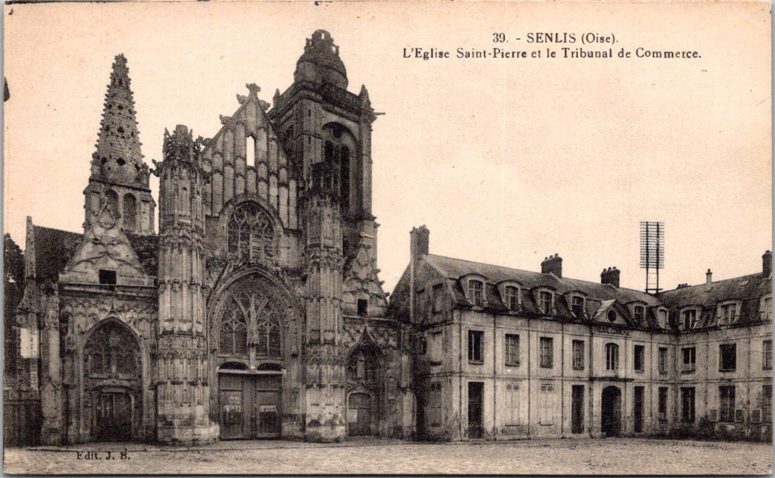 Vintage Postcard The Saint Pierre Church The Commercial Court Senlis Oise France