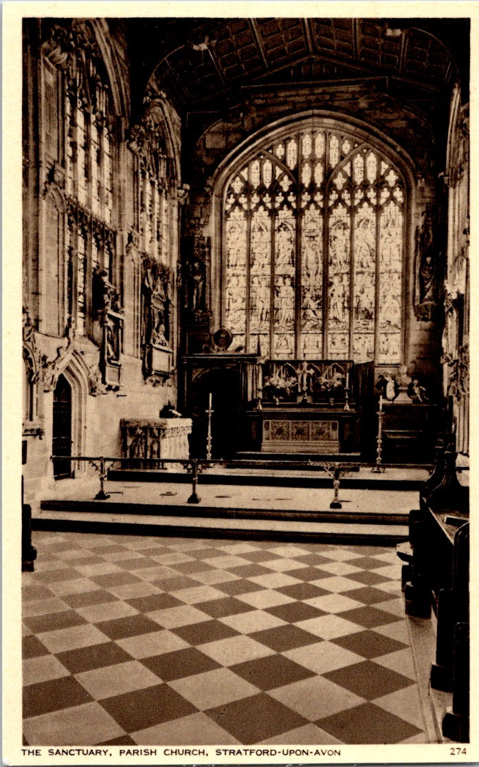 Vintage Postcard The Sanctuary Parish Church Stratford On Avon England Unposted