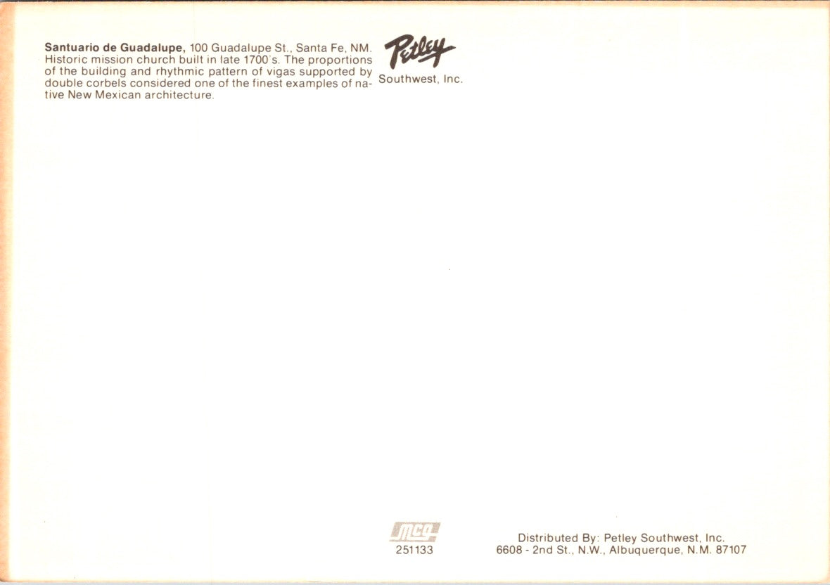 Vintage Postcard The Santuario de Nuestra Señora de GuadalupeNew Mexico Unposted