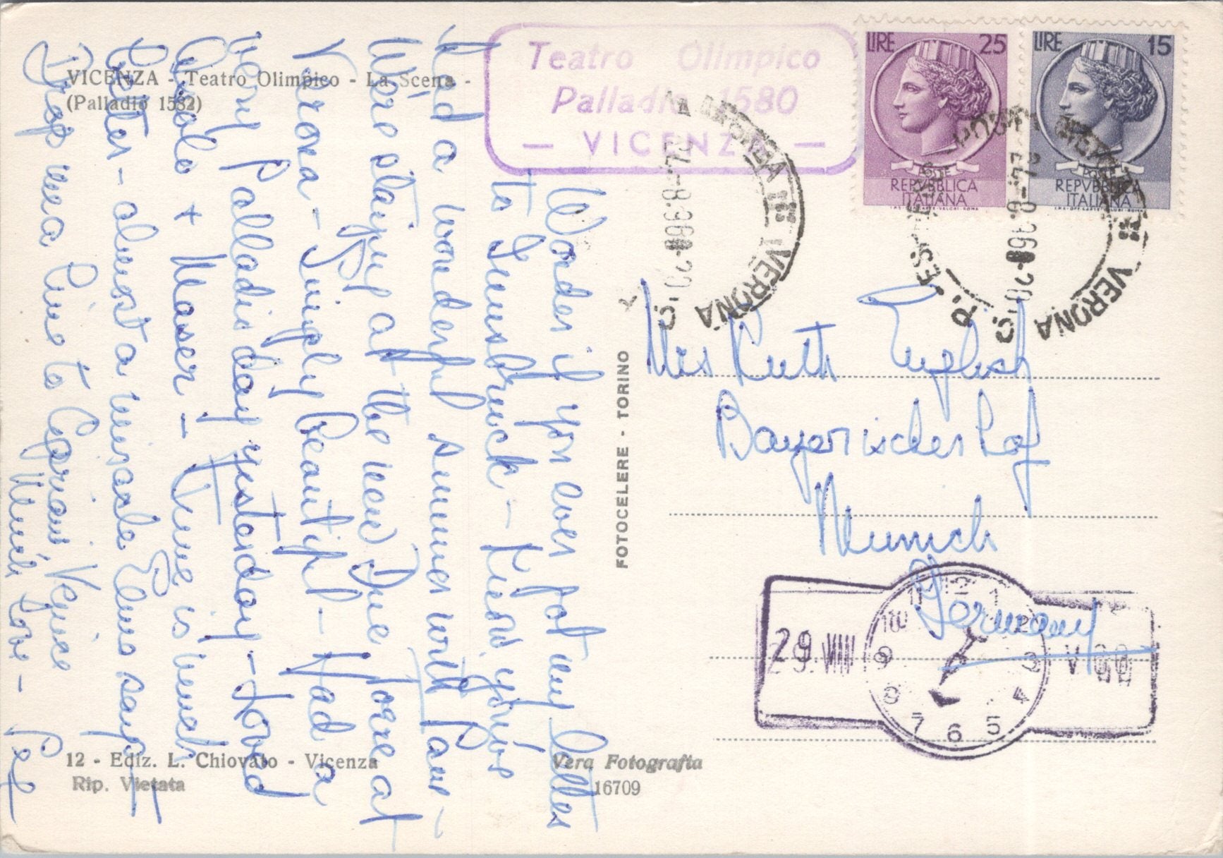 Vintage Postcard The Scene Palladio Olympic Theater Vicenza Italy Posted