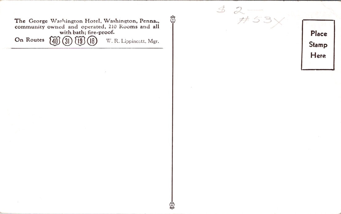 Vintage Postcard The Stage Coach Pioneer Grill Washington Pennsylvania Unposted