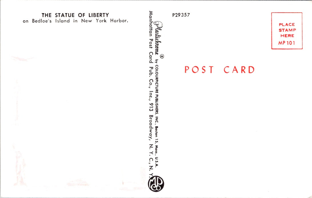 Vintage Postcard The Statue Of Liberty On Bedloe's Island New York Harbor