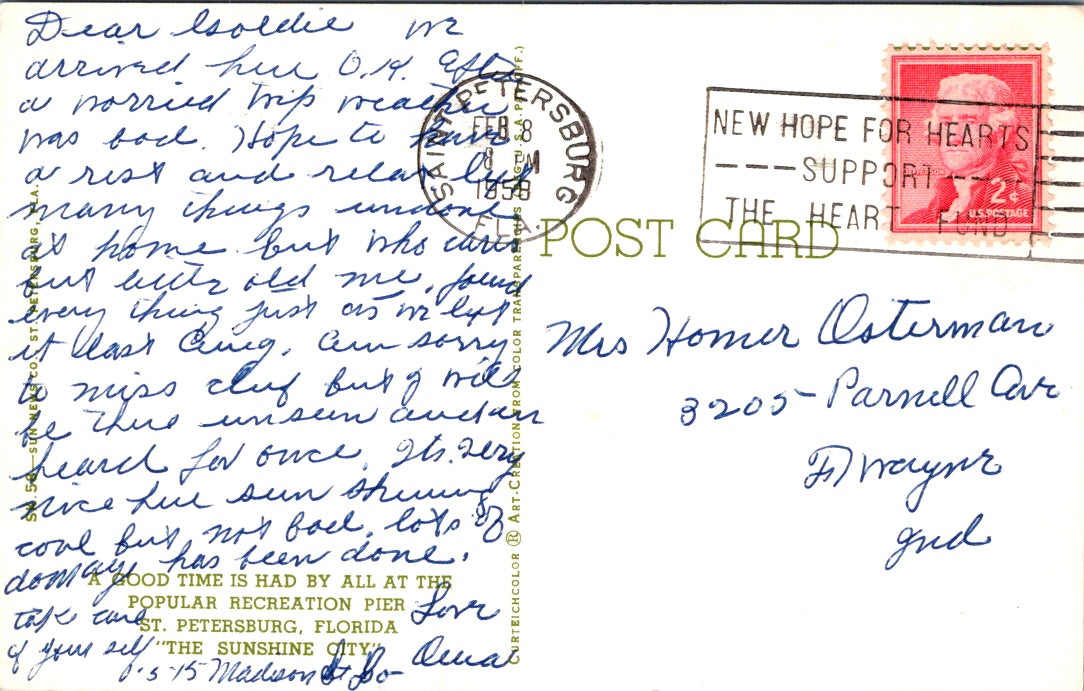 Vintage Postcard The Sunshine City Saint Petersburg Florida Posted 1958