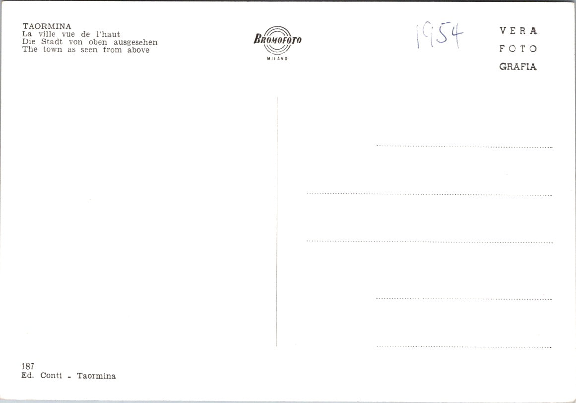 Vintage Postcard The Taormina City Seen From Above Italy Unposted