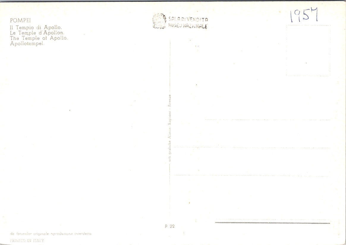 Vintage Postcard The Temple of Apollo Pompeii Italy Unposted