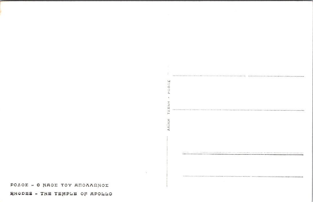 Vintage Postcard The Temple Of Apollo Rhodes Greece Unposted