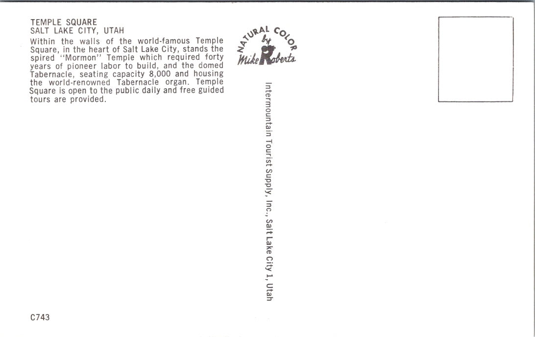 Vintage Postcard The Temple Square Salk Lake City Utah United States Unposted