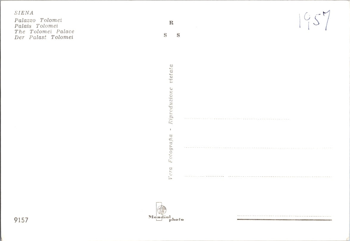 Vintage Postcard The Tolomei Palace Siena Italy Unposted