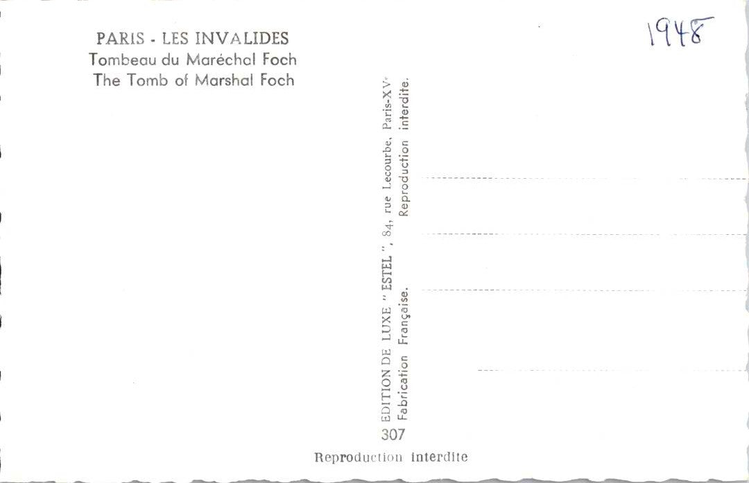 Vintage Postcard The Tomb Of Marshal Foch Les Invalides Paris France Unposted