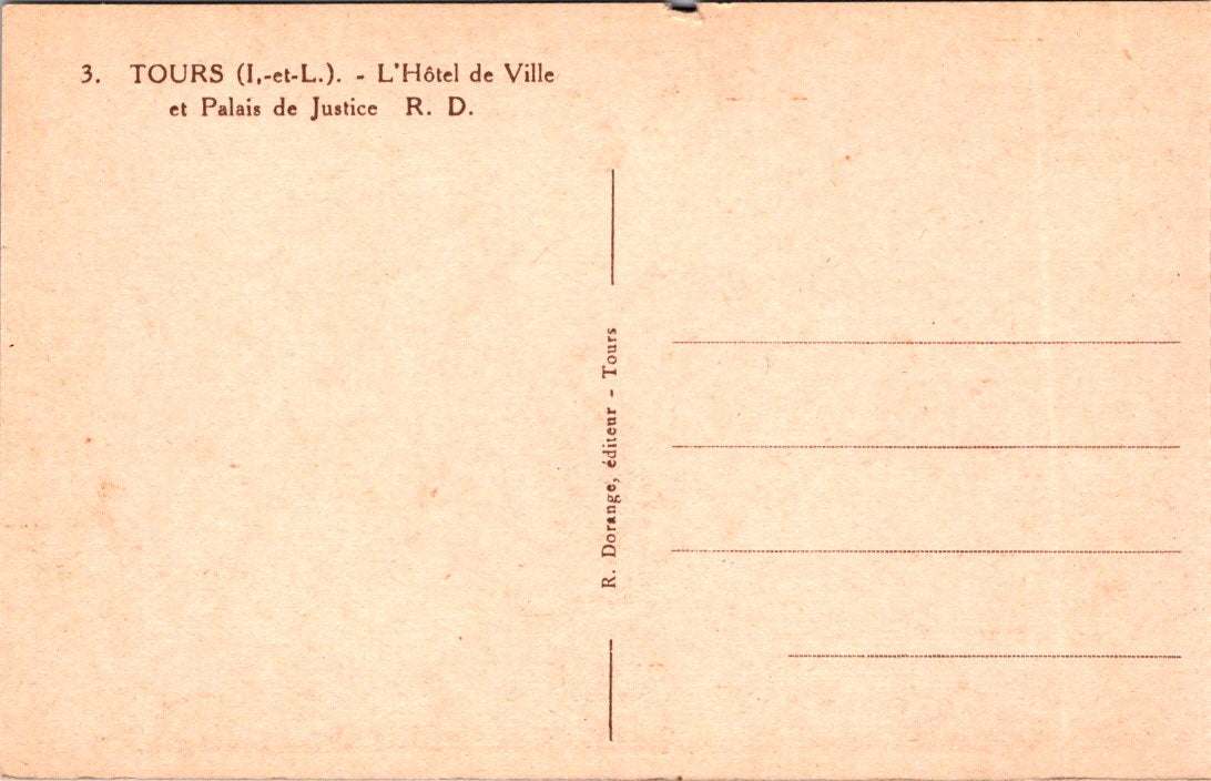 Vintage Postcard The Town Hall And Courthouse Tours France Unposted